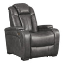 Leatherette Upholstered Metal Power Recliner with Adjustable Headrest, Gray