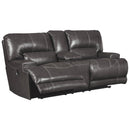 Leatherette Upholstered Metal Power Reclining Loveseat with Storage Console, Gray