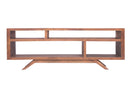 This acacia wood Tv Unit features a mid century modern design along with varied size shelves. With the smooth top of 66 inches, one can easily use this walnut brown finish furniture for the placement of a wide screen TV(max. 62 inches), accompanied by decorative statues, figurines, etc. The splayed legs provide a good support to the whole structure while giving it a good lift.
