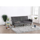 This stylish convertible futon sofa goes for a simple yet elegant modern look in your living room. This sofa is upholstered with gray color flannelette with detailed vertical tufting ,glamorous arm design and tapered wooden feet. This futon sofa can easily converted into bed position for accommodating unexpected guests. Made up of wood frame over which gray flannelette fabric is draped, this futon sofa is designed with greatest comfort in mind. The unique design inspires a fresh look for your home.
