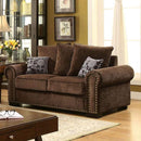 This loveseat is specially designed to spend some quality time with your loved ones in the super comfortable way. The rolled arms come to life with nail head accents while loose back pillows add visual depth to this love seat. Smooth chenille fabric creates a warm environment with the paired brown coloring. So get cozy and spend the evening with your favorite person stretch out and relax.