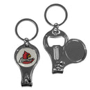 This unique Louisville Cardinals key chain has 3 great functions! The key chain opens to become a nail clipper, when open you can access the nail file pad and the key chain has a bottle opener. Officially licensed College product Licensee: Siskiyou Buckle. Features a nailfile & clippers. Functional bottle opener. High polish chrome finish. Louisville Cardinals domed emblem
