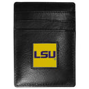 Our officially licensed Money Clip/Card Holders won't make you choose between paper or plastic because they stow both easily. Features our sculpted and enameled LSU Tigers emblem on the front of the wallet. Officially licensed College product Licensee: Siskiyou Buckle. Genuine fine grain leather wallet. Credit card slots. Magnetic money clip that will not damage your cards. Metal LSU Tigers emblem with enameled team colors