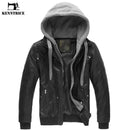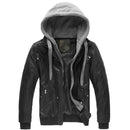 Men Leather Jacket / Motorcycle Polar Fleece Detachable Hood / Biker Jacket