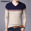Men Smart Wool Sweaters / Warm V-Neck Pullover / Slim Fit Cotton Sweater