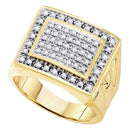 Description 10kt Yellow Gold Men's Round Diamond Square Frame Cluster Ring 1/2 Cttw Gemstone Details 1/2 Carats total weight Specifications 10kt Yellow Gold íÂCombined diamond weight of 1/2 carats total weight represents a range of 0.46 - 0.58 cts. t.w.