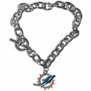 Our classic single charm bracelet is a great way to show off your team pride! The 7.5 inch large link chain features a high polish Miami Dolphins charm and features a toggle clasp which makes it super easy to take on and off.Officially licensed NFL product Licensee: Siskiyou Buckle. Bracelet is 7.5 inches. Easy toggle style clasp. Large link style chain. Miami Dolphins charm with enameled team colors
