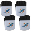 Use this attractive clip magnet to hold memos, photos or appointment cards on the fridge or take it down keep use it to clip bags shut. The magnet features a printed Miami Dolphins logo.Officially licensed NFL product Licensee: Siskiyou Buckle. Pack of 4, 2 inch wide clip magnet, with bottle opener on the back. Strong magnet to hold memos or notes. Use a clip to keep chips or other bag items fresh. The Miami Dolphins logo is printed on the front of the magnet