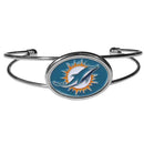These comfortable and fashionable double-bar cuff bracelets feature a 1 inch metal Miami Dolphins inset logo with enameled detail.Officially licensed NFL product Licensee: Siskiyou Buckle. Open style cuff bracelet for easy fit. High polish finish . Classic double bar design . Inset Miami Dolphins