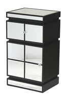 Black Mirror - 16" X 13" X 29" Black MDF, Wood, Mirrored Glass Cabinet with a Drawer and a Door