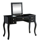 Makeup Mirror - 18" X 43" X 47" Tan Fabric Black Wood Mirror Upholstered (Seat) Vanity Set