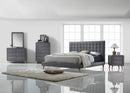 Get the look and style of your bedroom to highest taste by adding this elegant wooden mirror to your home setting. Our upholstered bedroom collection is designed to readily fit into any existing decor. It features a chic light gray fabric with black welt trim a gorgeous accent mirror and a beautiful exposed wooden feet. This is a great way to elevate the overall setting of your bedroom with a contemporary style.