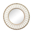 Create a taste of beautiful Tulum with 33.50" Cassie Woven Rattan Wall Mirror. Its handcrafted white rattan-style with braided rope design makes this mirror more a work of art than a mere accent. The open weave pattern exudes an airy feel and allows light to stream through it and reflect all around the center mirror for an added brightening effect. This mirror comes ready to hang and looks terrific placed near a tall house plant or on its own in any room. It measures 33.50' W x 4.5' D x 33.5' H with 18.5" diameter mirror.