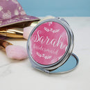 A thoughtful and beautifully designed bridesmaid maid of honor or even flower girl gift. This compact mirror comes in a range of vibrant colors to suit each girl's personality and style. Give to your girls on the morning of your wedding as a perfect thank you gift - as well as super practical! Personalise with a name and title Made from high shine metal Perfect thank you gift