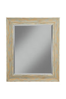 Go for this contemporary farmhouse wall mirror that displays a raw accent with its antique turquoise wash look. The polystyrene frame holds a beveled glass in a rustic way and features sharp edges. It is designed in a particular way that you can easily hang it on any wall either horizontal or vertical way.