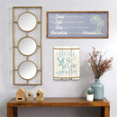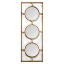Make any wall more stylish with the Mirror. The handcrafted metal-and-glass design boasts three round mirrors within a sleek rectangular frame finished in stunning antique gold. The Rosa Mirror measures 39.96' W X 1.97' D X 14.96' H overall and can be hung vertically or horizontally, making it easy to decorate. Add it to a hall, nook, or any room and enjoy its eye-catching appeal.