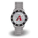 This stainless steel bracelet features a team color dial, quartz movement, accent color bezel, scratch resistant mineral crystal lens, and a stainless steel case back. Made in China.