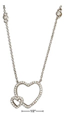 Sterling Silver Necklace: 16.5"-18.5" Adjustable Micro Pave Cubic Zirconia Double Open Hearts Necklace