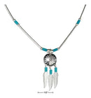 Sterling Silver Necklaces: 16" Concho Necklace With Feathers And Simulated Turquoise Heishi
