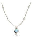 Sterling Silver 16" Liquid Silver And Diamond Shape Synthetic Blue Opal Necklace