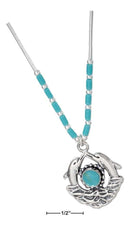 Sterling Silver Necklaces: 16" Liquid Silver And Simulated Turquoise Double Dolphin Necklace