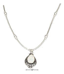 Sterling Silver Necklace: 16" Liquid Silver And Teardrop Synthetic White Opal Necklace