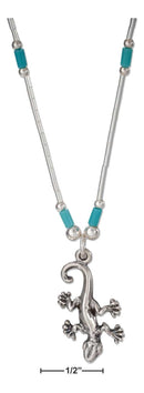 Sterling Silver Necklaces: 16" Liquid Silver Gecko Necklace With Simulated Turquoise Heishi