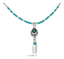 Sterling Silver Necklaces: 16" Liquid Silver Simulated Turquoise Bearpaw & Feathers Necklace