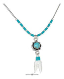 Sterling Silver Necklaces: 16" Simulated Turquoise Concho & Feathers Liquid Silver Necklace