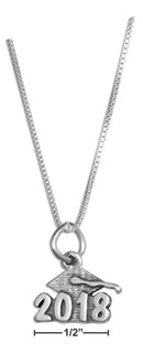 Sterling Silver 18" "2018" Graduation Charm Necklace Mortar Board With Tassel