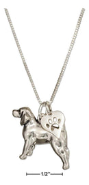 Sterling Silver 18" Beagle Necklace With Dog Paw Print Heart Pendant