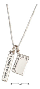 Sterling Silver Necklace: 18" Book Lovers Necklace With Book And Bookmark With I Love Books