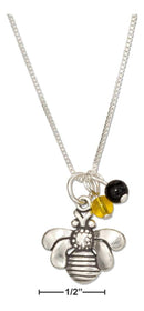 Sterling Silver 18" Bumble Bee Pendant Necklace With Black And Yellow Beads