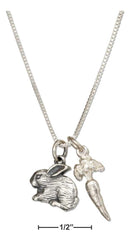 Sterling Silver 18" Carrot And Bunny Rabbit Pendant Necklace
