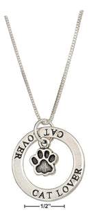 Sterling Silver 18" "cat Lover" Washer Pendant Necklace With Paw Print