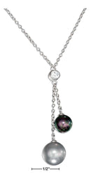 STERLING SILVER 18" CUBIC ZIRCONIA AND FAUX GRAY AND BLACK PEARL LARIAT NECKLACE