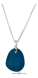 Sterling Silver 18" Deep Ocean Dark Blue Pebble Sea Glass Pendant Necklace
