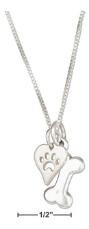 Sterling Silver Necklace: 18" Dog Bone Necklace With Dog Paw Print Heart Charm