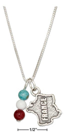 Sterling Silver 18" France Map Pendant Necklace With Blue White And Red Beads