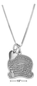 Sterling Silver 18" Hawaii State Pendant Necklace With Heart Charm