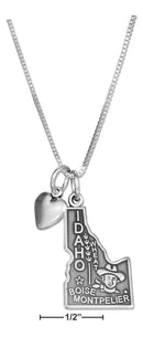 Sterling Silver 18" Idaho State Pendant Necklace With Heart Charm