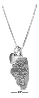 Sterling Silver 18" Illinois State Pendant Necklace With Heart Charm