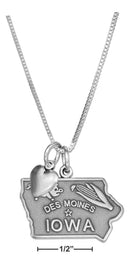 Sterling Silver 18" Iowa State Pendant Necklace With Heart Charm