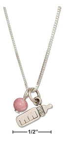 Sterling Silver Necklaces: 18" It'S A Girl Baby Bottle Pendant Necklace With Pink Bead