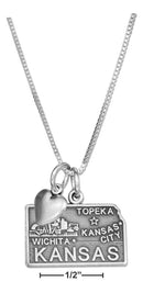 Sterling Silver 18" Kansas State Pendant Necklace With Heart Charm