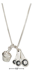 Sterling Silver 18" Measuring Spoons And Cupcake Necklace