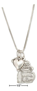 Sterling Silver 18" Michigan State Pendant Necklace With Heart Charm