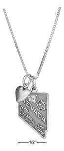 Sterling Silver 18" Nevada State Pendant Necklace With Heart Charm
