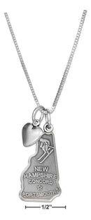 Sterling Silver 18" New Hampshire State Pendant Necklace With Heart Charm