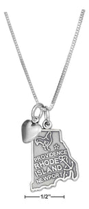 Sterling Silver 18" Rhode Island State Pendant Necklace With Heart Charm